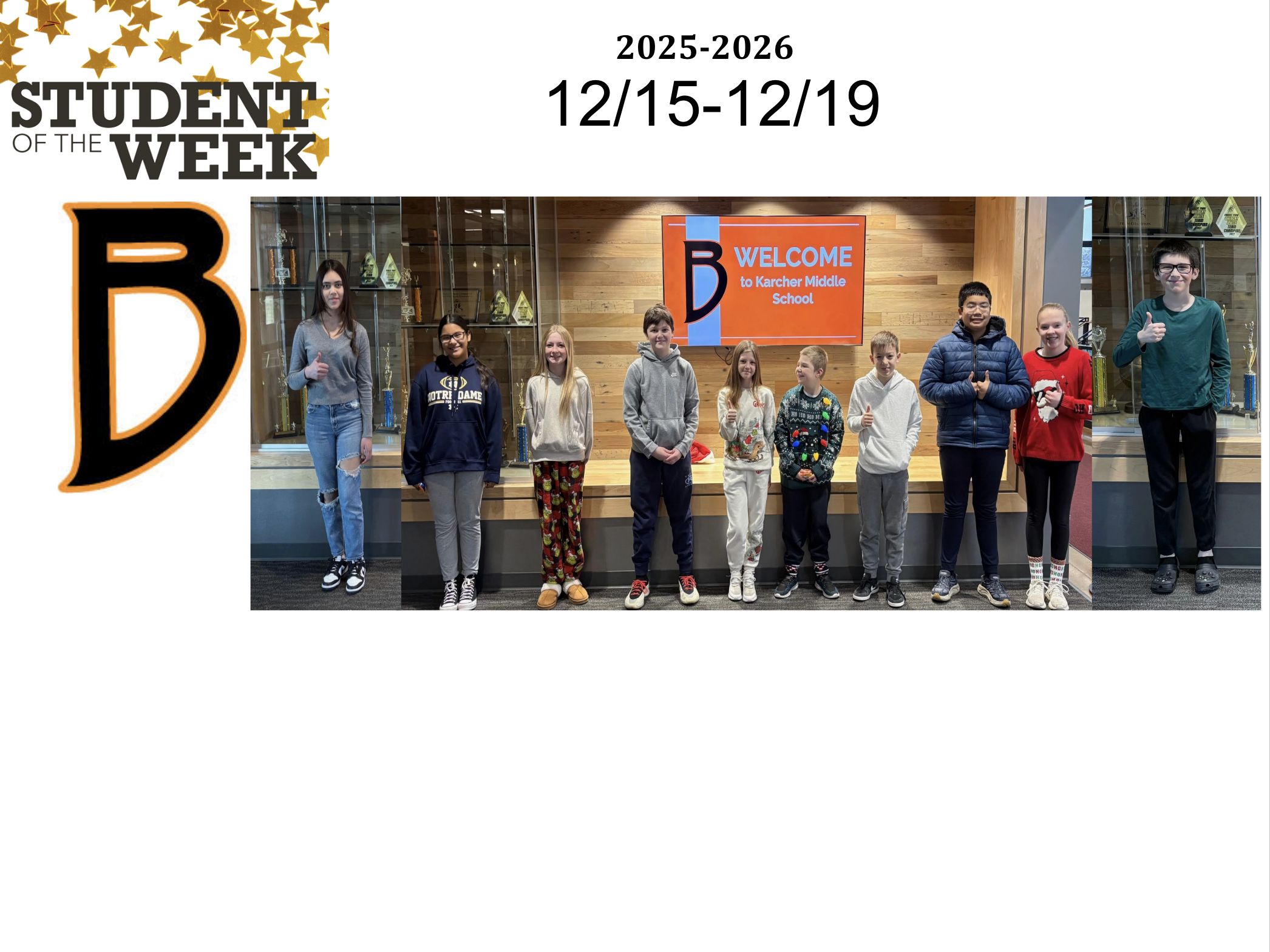 Students of the Week from 12/15-12/19Proud of you all!! Keep up the great work!